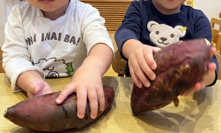 頑張ったご褒美に今日のおやつは焼き芋。全員が笑顔で完食!お疲れ様でした。
